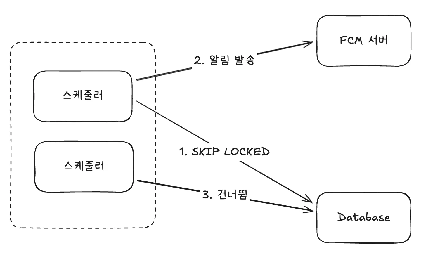 이로서 중복 발송을 방지할 수 있습니다. 서버 A가 이미 PENDING 상태의 알림들을 모두 SUCCESS로 변경했기 때문에, 서버 B가 나중에 조회해도 중복해서 처리할 알림이 없기 때문입니다.